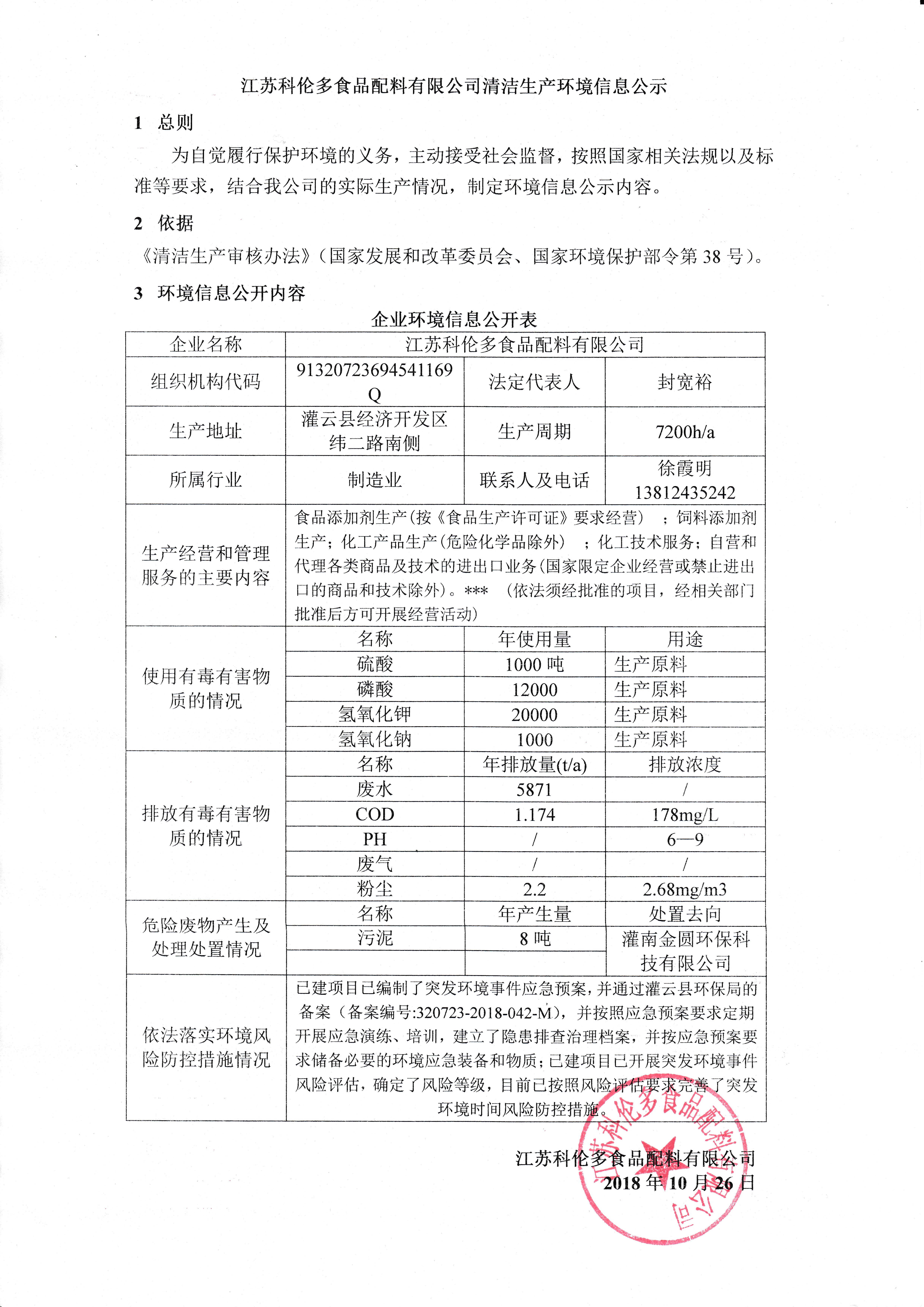 江蘇科倫多食品配料有限公司清潔生產(chǎn)環(huán)境信息公示
