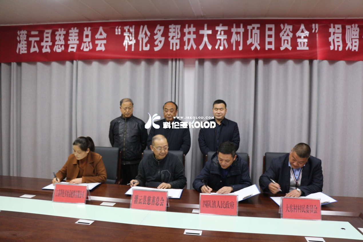 2020年3月26日下午,江蘇科倫多食品配料有限公司通過灌云縣慈善總會,向灌云縣四隊鎮(zhèn)大東村捐款15萬元,用于大東村文化廣場項目建設,助力鄉(xiāng)村發(fā)展再上臺階,為構建和諧灌云貢獻出力量。