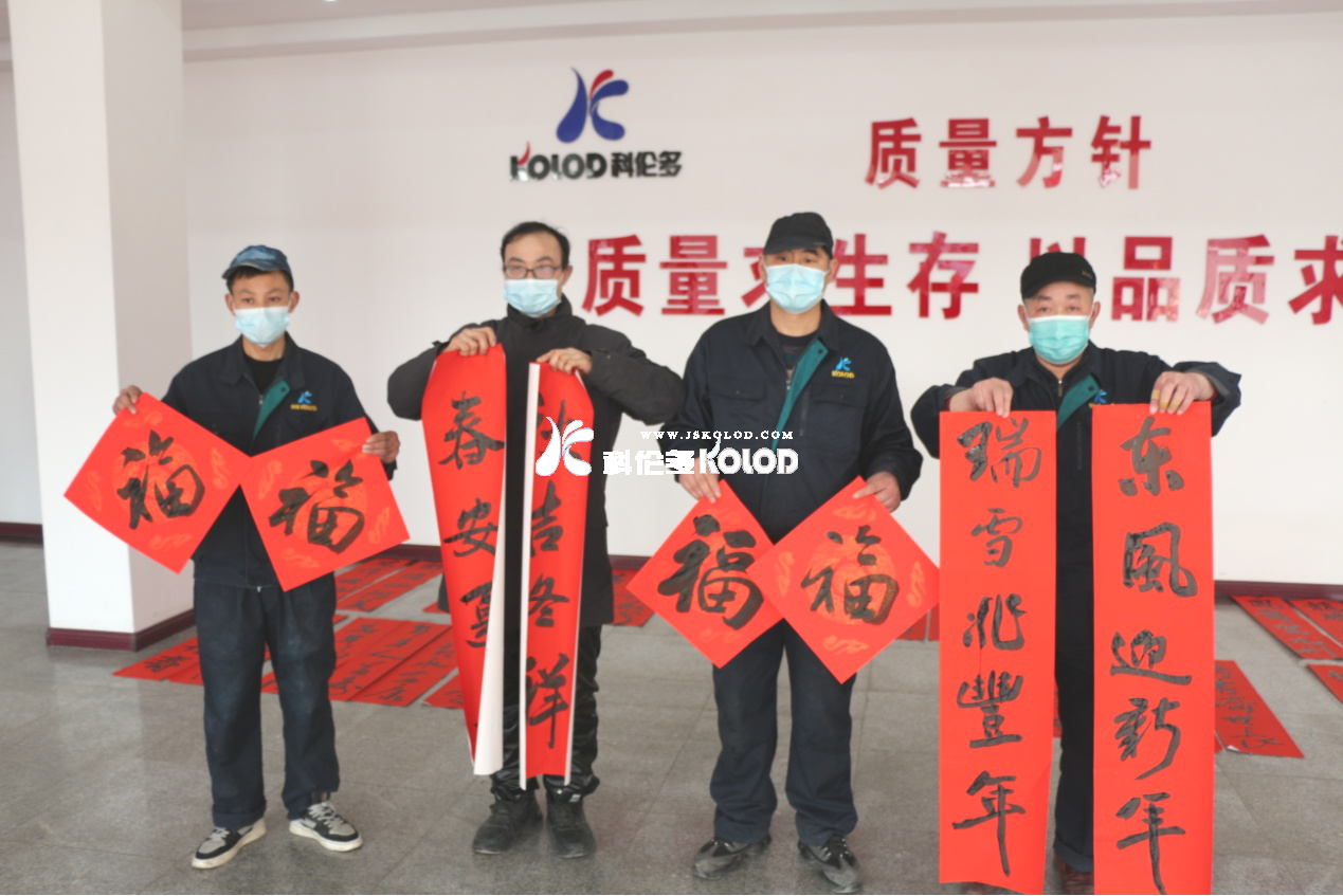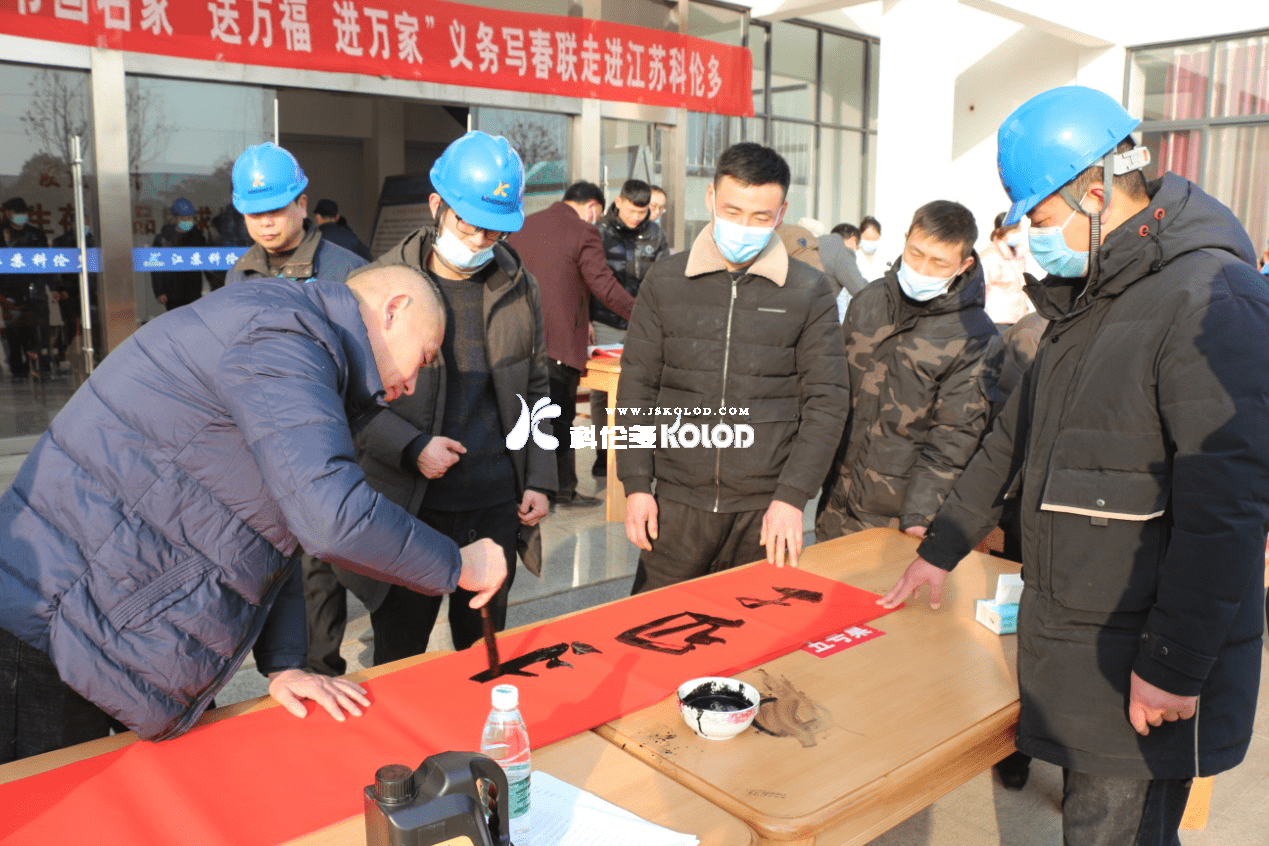2021年2月3日下午,灌云縣文化館書畫名家來到江蘇科倫多食品配料有限公司,開展“送萬福、進萬家”義務(wù)寫春聯(lián)活動。書法家們擺好筆墨,起筆揮舞,寓意祥和的對聯(lián)和代表吉祥的“?!弊周S然紙上,紅彤彤的春聯(lián)既有辭舊迎新的美好愿景,也有平安吉祥、和諧發(fā)展的勵志高歌,洋溢著對新年的期待和祝福。對聯(lián)或瀟灑飄逸,剛勁俊拔,或龍飛鳳舞,筆走龍蛇,展現(xiàn)了書法家們過硬的書法水平和濃厚的藝術(shù)功底,為科倫多職工送上了一份文化的饕餮盛宴。活動現(xiàn)場翰墨飄香、春意融融、氣氛高漲,每名員工臉上都洋溢著幸福的微笑。