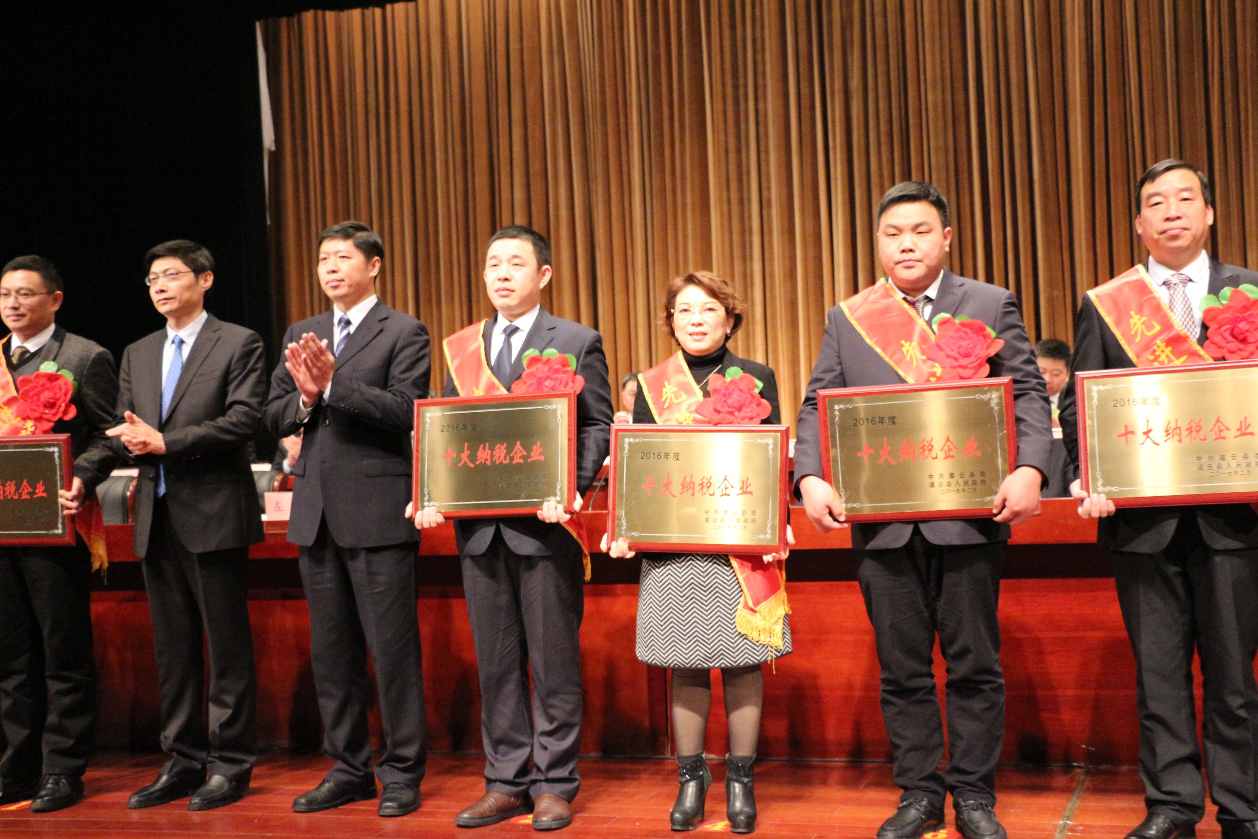 2017年2月4日,新年上班第一天,灌云縣政府所有機關(guān)單位召開全縣會議,對2016年度先進代表進行表彰。公司以開發(fā)區(qū)第一、全縣第四的納稅額被授予“2016年度十大納稅企業(yè)”,總經(jīng)理翁京蓉女士代表公司參加授獎儀式。