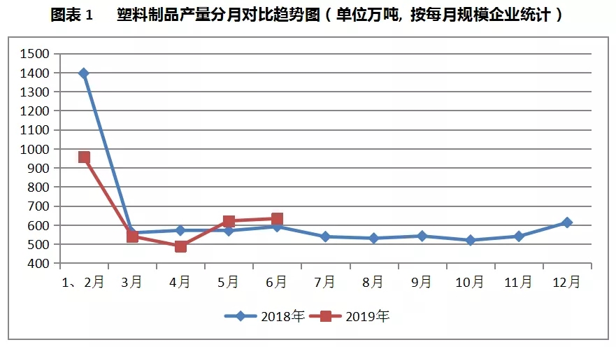 ????????按6月規(guī)模企業(yè)統(tǒng)計(jì):1-6月中國(guó)規(guī)模以上工業(yè)企業(yè)塑料制品產(chǎn)量累計(jì)為3238.4萬噸,同比增長(zhǎng)了2.6%;其中,6月份產(chǎn)量為633.1萬噸,同比增長(zhǎng)8.8%。按每月規(guī)模企業(yè)統(tǒng)計(jì): 1-6月中國(guó)規(guī)模以上工業(yè)企業(yè)塑料制品產(chǎn)量累計(jì)為3240.8萬噸,同比下降12.05%;其中,6月份產(chǎn)量為633.1萬噸,環(huán)比增長(zhǎng)1.95%,同比增長(zhǎng)7.16%。