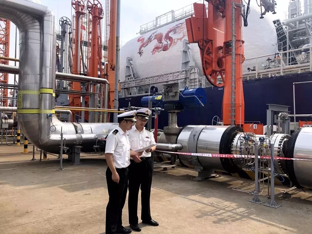 ????????運輸船靠泊后,泰州海關關員第一時間辦理了單證審核、登輪檢疫等監(jiān)管通關手續(xù),實現(xiàn)了“靠畢即檢”和“檢畢即卸”,科學確定船艙容量計重方案,為烯烴項目落地保駕護航。