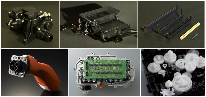 ????????針對電動汽車應(yīng)用領(lǐng)域,公司開發(fā)了新型DURANEX PBT和DURAFIDE PPS材料。這些材料適用于發(fā)動機(jī)周邊部件,如動力控制單元(PCU),具有高絕緣性能、低吸水性,并可滿足惡劣工作條件下的要求(-40℃至150℃,相對濕度高達(dá)95%)。
