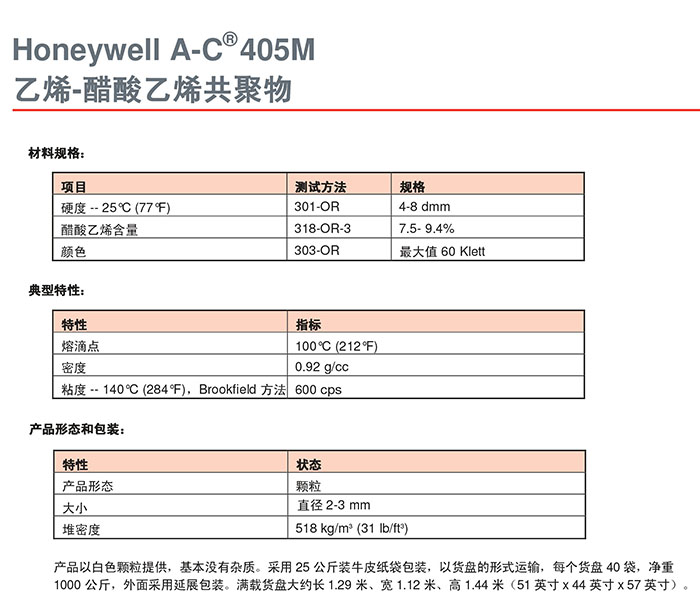 - Honeywell霍尼韋爾 A-C 405M/AC 405M 蠟粉 乙烯-醋酸乙烯共聚物 (EVA) 物性表, Honeywell霍尼韋爾 A-C 405M/AC 405M 蠟粉 乙烯-醋酸乙烯共聚物 (EVA) 產(chǎn)品參數(shù),Honeywell霍尼韋爾 A-C 405M/AC 405M 蠟粉 乙烯-醋酸乙烯共聚物 (EVA) 性能表,Honeywell霍尼韋爾 A-C 405M/AC 405M 蠟粉 乙烯-醋酸乙烯共聚物 (EVA) 出廠報告, MSDS,, 物質(zhì)安全資料表, UL黃卡,{ SGS報告, RoHS, 食品級認證, NSF飲用水標(biāo)準(zhǔn), 產(chǎn)品資料, 產(chǎn)品性能, 出廠報告, 原廠原包, 代理商, 熱變形溫度, 熔指數(shù), 流動系數(shù), 抗沖擊性能、沖擊強度, 低溫韌性、低溫抗沖擊性能, 熔體流動系數(shù)、熔體流動速率, 加工工藝、加工參數(shù)、加工溫度, 歐盟RoHS 德國FDA 美國FDA 日本FDA