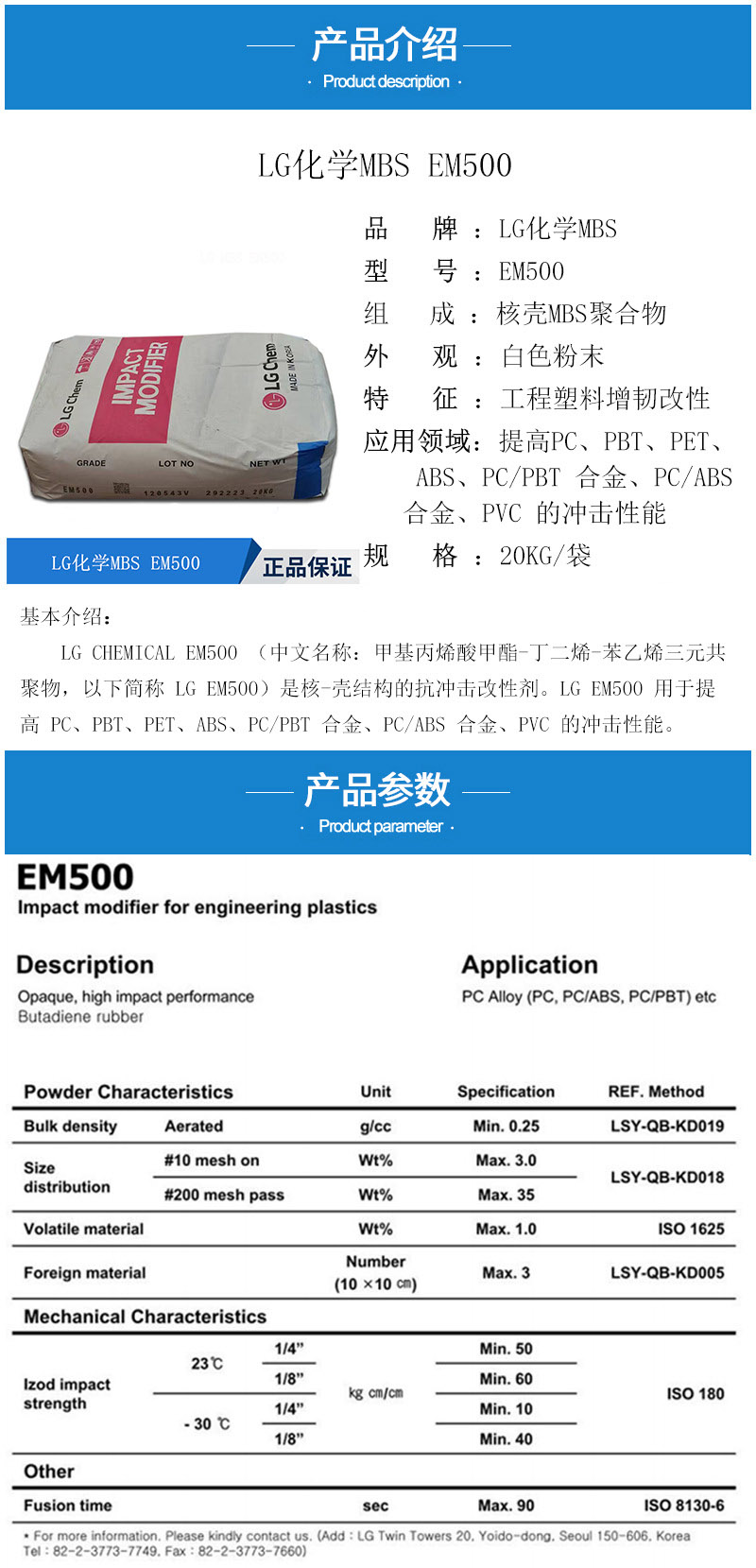 - MBS增韌劑 韓國(guó)LG EM500 抗沖擊改性劑 PC ABS工程塑料增韌 mbs50 物性表, MBS增韌劑 韓國(guó)LG EM500 抗沖擊改性劑 PC ABS工程塑料增韌 mbs50 產(chǎn)品參數(shù),MBS增韌劑 韓國(guó)LG EM500 抗沖擊改性劑 PC ABS工程塑料增韌 mbs50 性能表,MBS增韌劑 韓國(guó)LG EM500 抗沖擊改性劑 PC ABS工程塑料增韌 mbs50 出廠報(bào)告, MSDS,, 物質(zhì)安全資料表, UL黃卡,{ SGS報(bào)告, RoHS, 食品級(jí)認(rèn)證, NSF飲用水標(biāo)準(zhǔn), 產(chǎn)品資料, 產(chǎn)品性能, 出廠報(bào)告, 原廠原包, 代理商, 熱變形溫度, 熔指數(shù), 流動(dòng)系數(shù), 抗沖擊性能、沖擊強(qiáng)度, 低溫韌性、低溫抗沖擊性能, 熔體流動(dòng)系數(shù)、熔體流動(dòng)速率, 加工工藝、加工參數(shù)、加工溫度, 歐盟RoHS 德國(guó)FDA 美國(guó)FDA 日本FDA