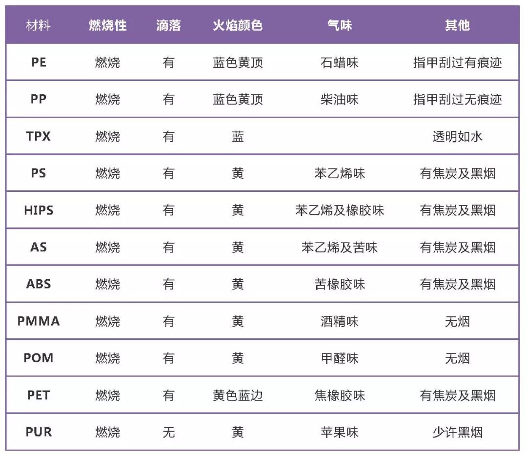 常用塑料的簡(jiǎn)易燃燒鑒別方法