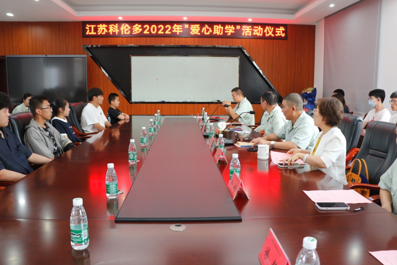 2022年8月16日下午,江蘇科倫多2022年“愛心助學”活動儀式如期開展。此次活動旨在彰顯中華民族“扶貧濟困、慈善為懷”的優(yōu)良傳統(tǒng),關心關愛集團職工子女健康成長,激勵學子樹立“學海無涯勤是岸,云程有路志為梯”的信念,培養(yǎng)青少年成人成才、樹立振興家鄉(xiāng)經濟、強大祖國根基的遠大理想。董事長封寬裕先生,副董事長翁京蓉女士,公司部分干部、家長代表、學生代表及受助學生均參加了本次活動。