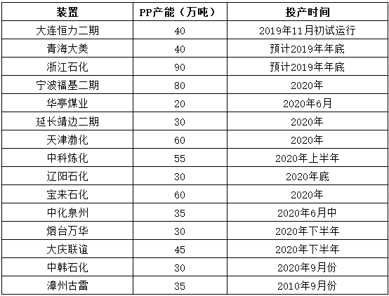 ????????據(jù)了解,目前大連恒力二期聚丙烯裝置預(yù)計(jì)下個(gè)月試運(yùn)行,青海大美、浙江石化等裝置年底前或?qū)⑼懂a(chǎn)。明年投產(chǎn)熱情依舊,寧波?;凇⑷A庭煤業(yè)、天津渤化、中科煉化等十幾套裝置產(chǎn)能集中釋放,可以說未來供應(yīng)壓力山大。