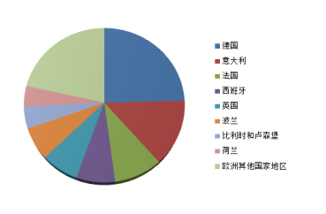 ????????歐洲本土的塑料加工商對塑料需求量為5120萬噸,按地域分布劃分,德國塑料加工商的需求量最大,為24.6%,其次分別為意大利(13.9%),法國(9.4%),西班牙(7.6%),英國(7.3%),波蘭(6.8%),比利時和盧森堡(4.6%),荷蘭(4.3%),其他歐洲國家地區(qū)共占21.5%。