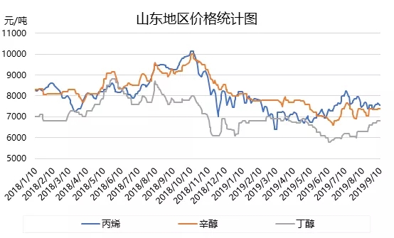 ????????如上圖所示,為丙烯及丁辛醇價格走勢圖,雖然丁辛醇呈現(xiàn)上行走勢,但漲勢趨緩,多是處于消除低價狀態(tài)。丙烯近期穩(wěn)中下行,但在一定程度上緩解了丁辛醇行業(yè)的虧損壓力,尤其辛醇行業(yè),目前基本在成本線附近。加之辛醇行業(yè)存檢修情況,目前低價已經(jīng)減少,廠家基本維持在7500元/噸水平。丁醇近期走勢穩(wěn)健,各廠家報盤基本在6800元/噸自提。雖然對DOP、DBP存成本傳導(dǎo),但此次利好支撐作用小于苯酐。