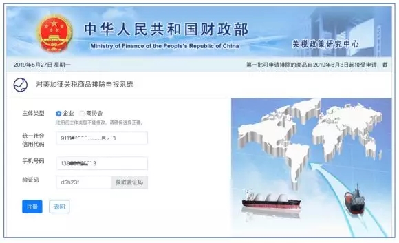 ????????昨日上午,財政部關(guān)稅司發(fā)布“對美加征關(guān)稅商品(第二批)排除申報系統(tǒng)于2019年8月28日開放”的公告,今天起,在華企業(yè)及協(xié)(商)會可通過財政部關(guān)稅政策研究中心網(wǎng)站(https://gszx.mof.gov.cn)注冊、登錄,并開始填寫排除申請。9月2日,排除申報系統(tǒng)正式接受第二批商品排除申請。