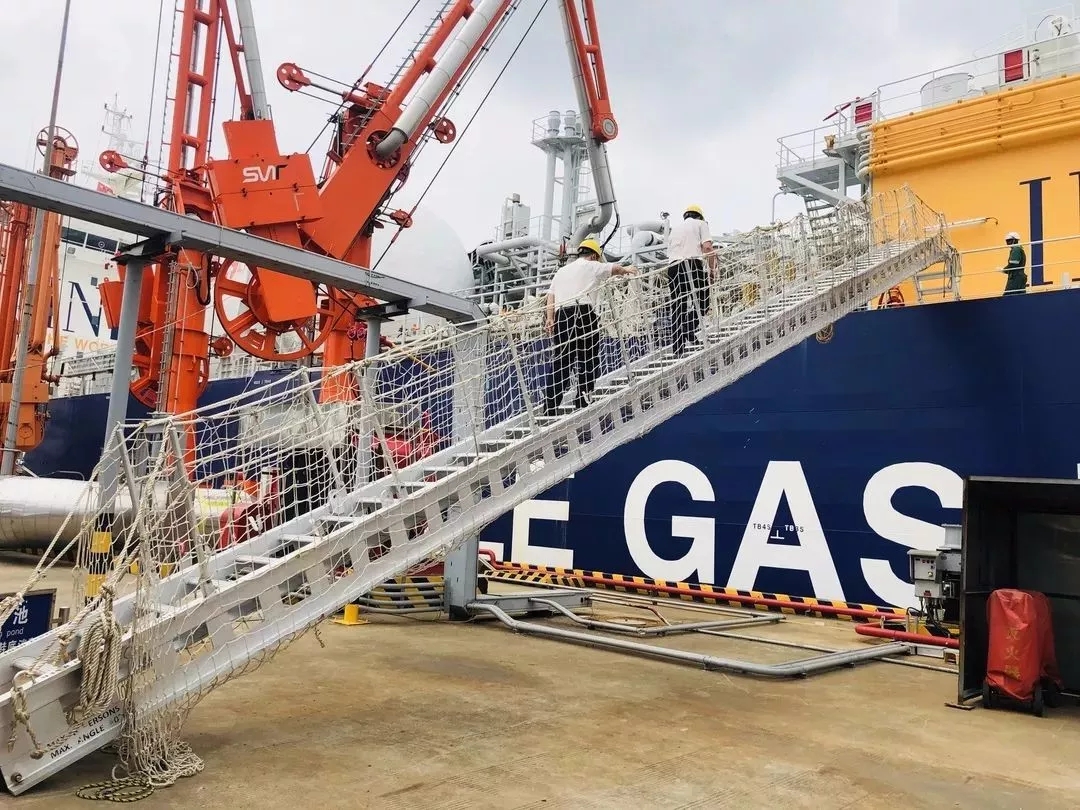????????運輸船靠泊后,泰州海關關員第一時間辦理了單證審核、登輪檢疫等監(jiān)管通關手續(xù),實現(xiàn)了“靠畢即檢”和“檢畢即卸”,科學確定船艙容量計重方案,為烯烴項目落地保駕護航。