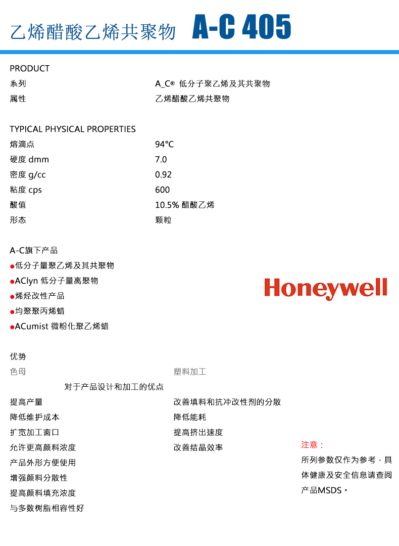 霍尼韋爾蠟粉A-C405M技術(shù)參數(shù)