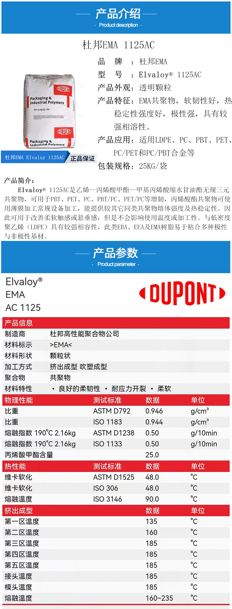 - EMA 杜邦 1125 相溶劑 PC/PET PBT增韌劑 LDPE薄膜 Elvaloy 物性表, EMA 杜邦 1125 相溶劑 PC/PET PBT增韌劑 LDPE薄膜 Elvaloy 產(chǎn)品參數(shù),EMA 杜邦 1125 相溶劑 PC/PET PBT增韌劑 LDPE薄膜 Elvaloy 性能表,EMA 杜邦 1125 相溶劑 PC/PET PBT增韌劑 LDPE薄膜 Elvaloy 出廠報(bào)告, MSDS,, 物質(zhì)安全資料表, UL黃卡,{ SGS報(bào)告, RoHS, 食品級(jí)認(rèn)證, NSF飲用水標(biāo)準(zhǔn), 產(chǎn)品資料, 產(chǎn)品性能, 出廠報(bào)告, 原廠原包, 代理商, 熱變形溫度, 熔指數(shù), 流動(dòng)系數(shù), 抗沖擊性能、沖擊強(qiáng)度, 低溫韌性、低溫抗沖擊性能, 熔體流動(dòng)系數(shù)、熔體流動(dòng)速率, 加工工藝、加工參數(shù)、加工溫度, 歐盟RoHS 德國FDA 美國FDA 日本FDA