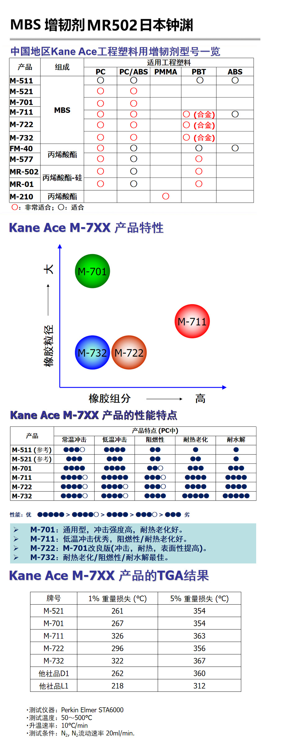 - 增韌劑MR502(日本鐘淵) PC/PBT等材料應用 物性表, 增韌劑MR502(日本鐘淵) PC/PBT等材料應用 產(chǎn)品參數(shù),增韌劑MR502(日本鐘淵) PC/PBT等材料應用 性能表,增韌劑MR502(日本鐘淵) PC/PBT等材料應用 出廠報告, MSDS,, 物質安全資料表, UL黃卡,{ SGS報告, RoHS, 食品級認證, NSF飲用水標準, 產(chǎn)品資料, 產(chǎn)品性能, 出廠報告, 原廠原包, 代理商, 熱變形溫度, 熔指數(shù), 流動系數(shù), 抗沖擊性能、沖擊強度, 低溫韌性、低溫抗沖擊性能, 熔體流動系數(shù)、熔體流動速率, 加工工藝、加工參數(shù)、加工溫度, 歐盟RoHS 德國FDA 美國FDA 日本FDA