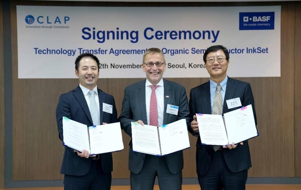 早前,韓國(guó)顯示配件及傳感器行業(yè)的領(lǐng)先企業(yè) CLAP與全球化工公司巴斯夫 (BASF) 在韓國(guó)首爾簽訂 Organic Semiconductor InkSet 技術(shù)轉(zhuǎn)讓合同。