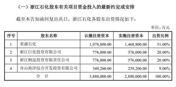 對此,證監(jiān)會要求榮盛石化說明浙江石化未來的股權(quán)變化是否對項目實施構(gòu)成重大影響。