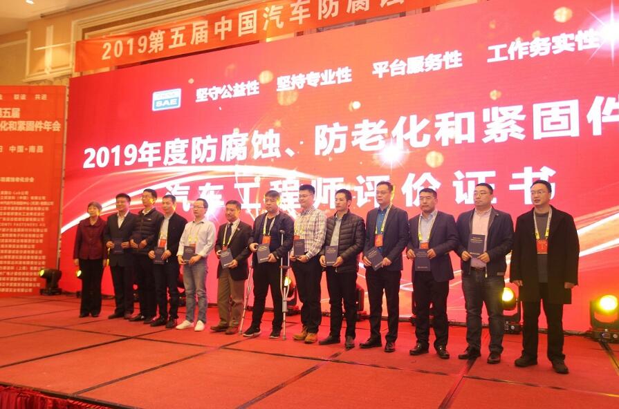 PPG大中華區(qū)一般工業(yè)漆高級(jí)商務(wù)總監(jiān)王華(右四)與PPG中國區(qū)電泳涂料技術(shù)服務(wù)經(jīng)理歐陽澤華(右三)在第五屆中國汽車防腐蝕老化和緊固件年會(huì)中榮獲高級(jí)工程師專業(yè)證書