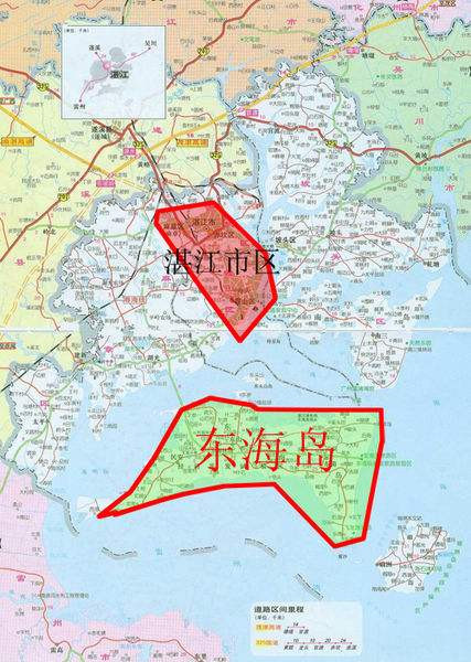 東海島位于在中國(guó)雷州半島東部,歷史上屬雷州府遂溪縣轄島。1958年?yáng)|北大堤修建后方便了島民出入,今屬湛江市經(jīng)濟(jì)開(kāi)發(fā)區(qū),島內(nèi)主要通有東山、東簡(jiǎn)、民安3個(gè)街道辦。地勢(shì)東高西低,東為玄武巖臺(tái)地,西為海積平原。東端距海灘2公里,有海拔111米高的龍水嶺火山錐,面積500×500米,為火山碎屑巖及少量玄武巖構(gòu)成,是天然航海陸標(biāo)。蔚鶨港和北山港為島內(nèi)最大漁港。蔚鶨附近6.5公里岸線,水深26~40米,其中40米深水航道650米。島內(nèi)有尚待開(kāi)發(fā)的土地40余萬(wàn)畝,地勢(shì)平坦,標(biāo)高4~14米,為地質(zhì)堅(jiān)硬的火成巖基地。地下水日開(kāi)采量可達(dá)50萬(wàn)立方米。盛產(chǎn)魚(yú)、鹽,有庵里、紅旗鹽場(chǎng),海水養(yǎng)殖 以鮑魚(yú)和對(duì)蝦著稱。海灘綿長(zhǎng)且潔白。