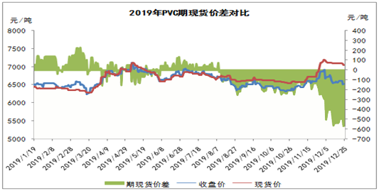 ????????近日,受市場供應(yīng)面有一定提升以及下游接貨不佳影響,PVC行情轉(zhuǎn)入跌勢。PVC期貨偏弱震蕩,對現(xiàn)貨市場價(jià)格形成一定打壓,市場價(jià)格承壓下跌。此外,期現(xiàn)貨價(jià)差再創(chuàng)新高,最高達(dá)570元/噸左右。由上圖可以看出,進(jìn)入2019年四季度,PVC期限價(jià)差逐漸擴(kuò)大,基本維持在500-600元/噸之間,而期貨價(jià)格遠(yuǎn)遠(yuǎn)低于現(xiàn)貨價(jià)格,超出正常范圍。因此單從期現(xiàn)價(jià)差方面看,后期將逐漸修復(fù)步入正軌,現(xiàn)貨大幅下降的可能性偏大。