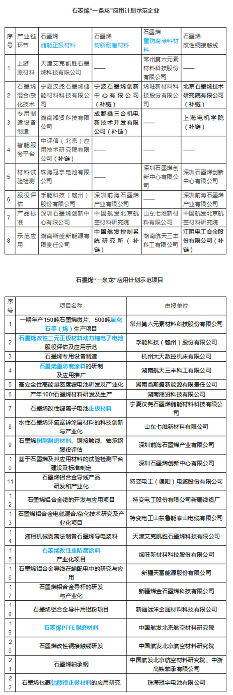 工信部公示石墨烯一條龍應(yīng)用計(jì)劃示范企業(yè)