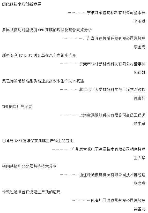 ????????6、 為流延薄膜配套的國內(nèi)外設(shè)備、備品備件和原輔材料生產(chǎn)等企業(yè)和機構(gòu)的負責(zé)人;