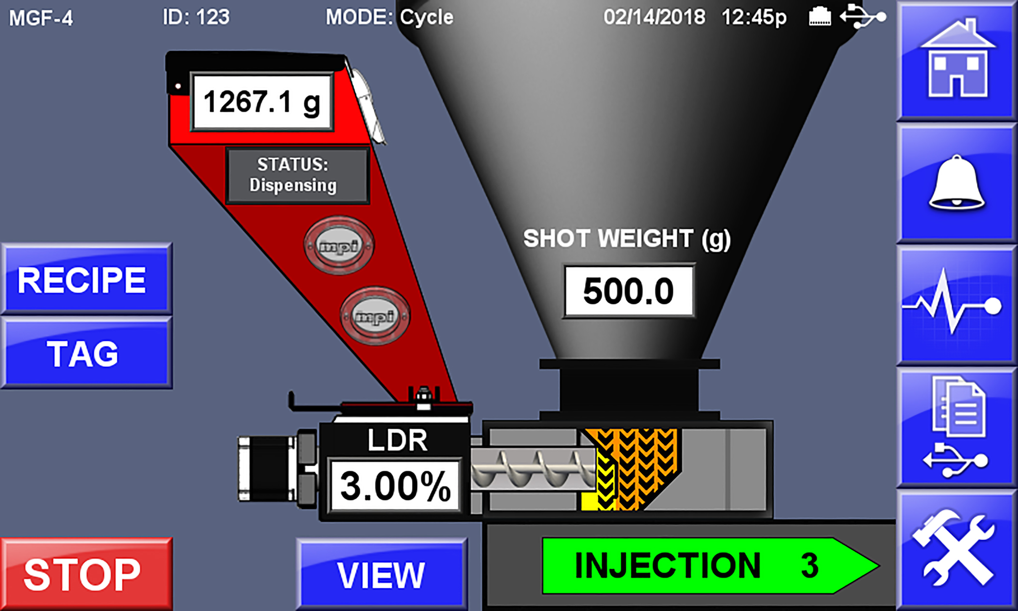 ????????與傳統(tǒng)喂料不同的是這種正在申請專利的控制系統(tǒng)可以在注塑階段同時計量加入色母,這使色母分散更均勻并節(jié)省成本。美鍇產(chǎn)品有限公司 (Maguire Products, Inc.) 在 K-2019 展上作為 MGF?重力喂料機(jī)的新功能介紹了該技術(shù)。在注塑成型周期中,大約 75% 的原料在回退階段進(jìn)入螺桿,大約 25% 在注塑期間進(jìn)入螺桿。由于傳統(tǒng)喂料機(jī)僅在回退過程中添加色母,因此可能會發(fā)生混合不足。當(dāng)注射量接近螺桿容量或最終產(chǎn)品為半透明時,這尤其是個問題。在新的 100% Injection Coloring系統(tǒng)中,MGF?喂料機(jī)上的專用控制器在兩個階段都接收來自成型機(jī)的信號,從而確保在整個周期中都添加色母。