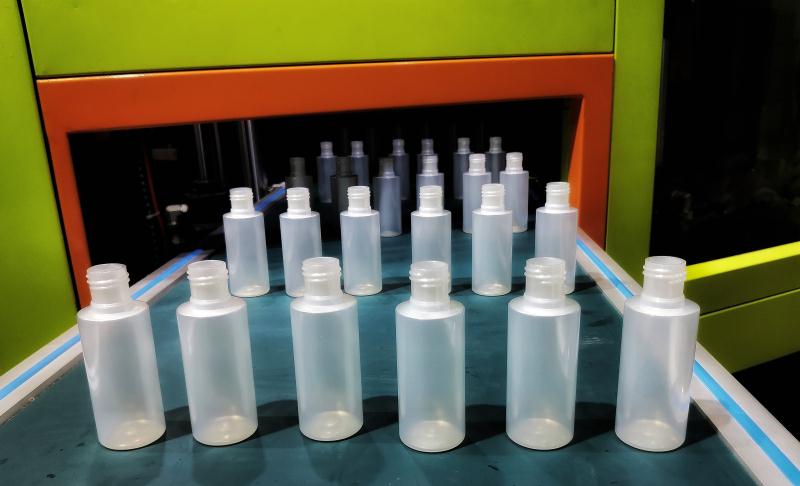 ????????本屆展會,精業(yè)機(jī)器展出了全自動一步法“注-拉-吹”機(jī)WISB-88AS,配合一出六腔的PET模具,在現(xiàn)場生產(chǎn)化妝品包裝中最常見的100ml精華液瓶,吸引了諸多目光。