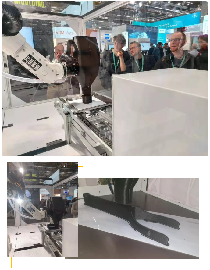 ????????據(jù)悉,伊之密SpaceA機(jī)器人柔性增材制造系統(tǒng)制品可適用于汽車、家電、建筑等領(lǐng)域,提供經(jīng)濟(jì)高效的生產(chǎn)方法并實(shí)現(xiàn)非常規(guī)組件的高質(zhì)量自動(dòng)化生產(chǎn)。而通過(guò)將原料擠出的形式,SpaceA可以直接使用含纖維填充的熱塑性顆粒料進(jìn)行生產(chǎn)。