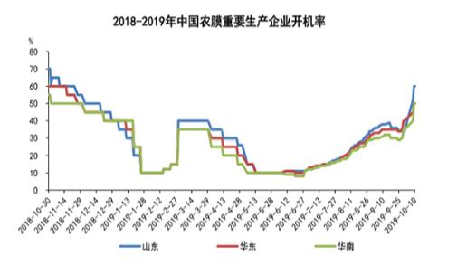 ????????隨著“金九銀十”農(nóng)膜旺季逐漸到來(lái),受節(jié)后需求增加的影響,終端用戶旺季買(mǎi)入意向增強(qiáng),訂單有所增加,加之不受節(jié)日環(huán)保政策制約的影響后,部分小廠家重新啟動(dòng),因此全國(guó)農(nóng)膜開(kāi)工率出現(xiàn)明顯提升。目前全國(guó)農(nóng)膜整體開(kāi)機(jī)率在50%左右,山東地區(qū)農(nóng)膜開(kāi)工率提升至60%,一定程度上帶動(dòng)了整體需求。