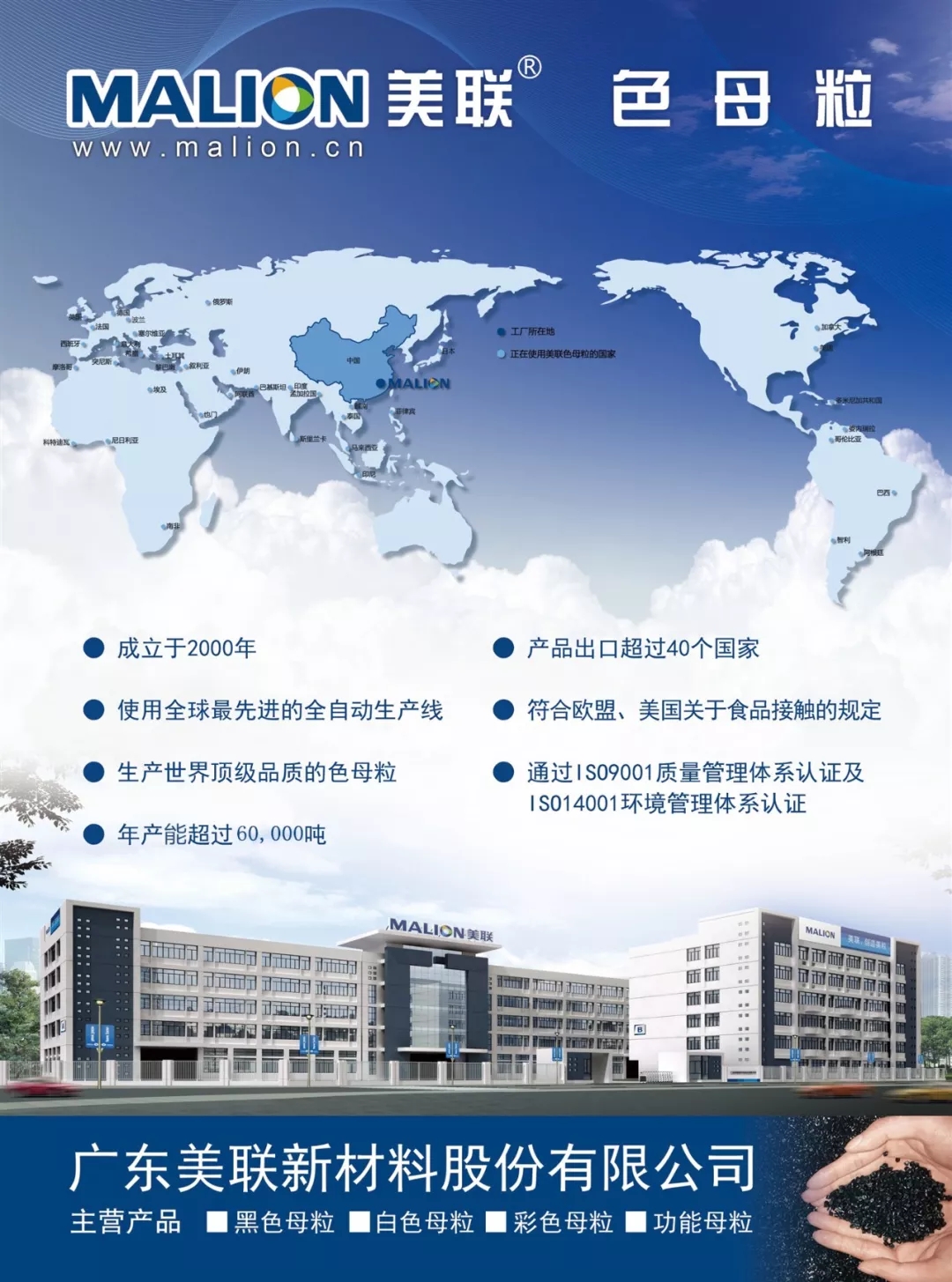 ??????????? ?本次展會美聯(lián)新材將帶來多種不同類型的產(chǎn)品,包括白色母粒,黑色母粒,彩色母粒以及功能母粒都將在現(xiàn)場展出,為客戶提供高品質(zhì)高標(biāo)準(zhǔn)的產(chǎn)品與服務(wù)!歡迎各位蒞臨參觀指導(dǎo)!