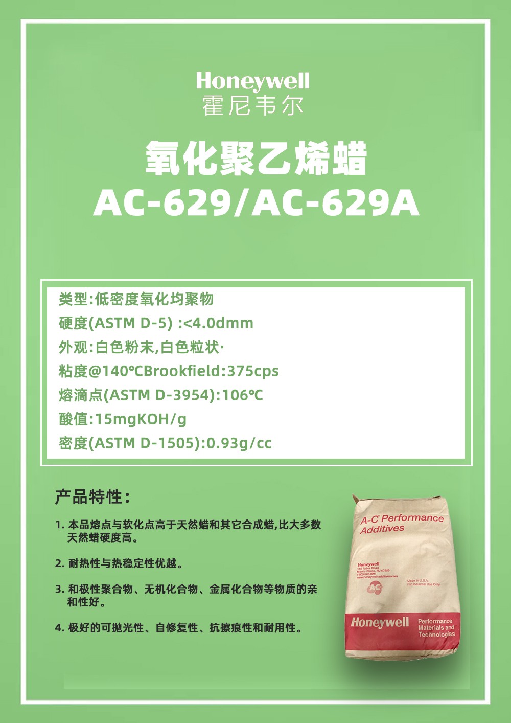 - Honeywell 霍尼韋爾氧化聚乙烯蠟A-C629A蠟粉 物性表, Honeywell 霍尼韋爾氧化聚乙烯蠟A-C629A蠟粉 產(chǎn)品參數(shù),Honeywell 霍尼韋爾氧化聚乙烯蠟A-C629A蠟粉 性能表,Honeywell 霍尼韋爾氧化聚乙烯蠟A-C629A蠟粉 出廠報(bào)告, MSDS,, 物質(zhì)安全資料表, UL黃卡,{ SGS報(bào)告, RoHS, 食品級(jí)認(rèn)證, NSF飲用水標(biāo)準(zhǔn), 產(chǎn)品資料, 產(chǎn)品性能, 出廠報(bào)告, 原廠原包, 代理商, 熱變形溫度, 熔指數(shù), 流動(dòng)系數(shù), 抗沖擊性能、沖擊強(qiáng)度, 低溫韌性、低溫抗沖擊性能, 熔體流動(dòng)系數(shù)、熔體流動(dòng)速率, 加工工藝、加工參數(shù)、加工溫度, 歐盟RoHS 德國(guó)FDA 美國(guó)FDA 日本FDA