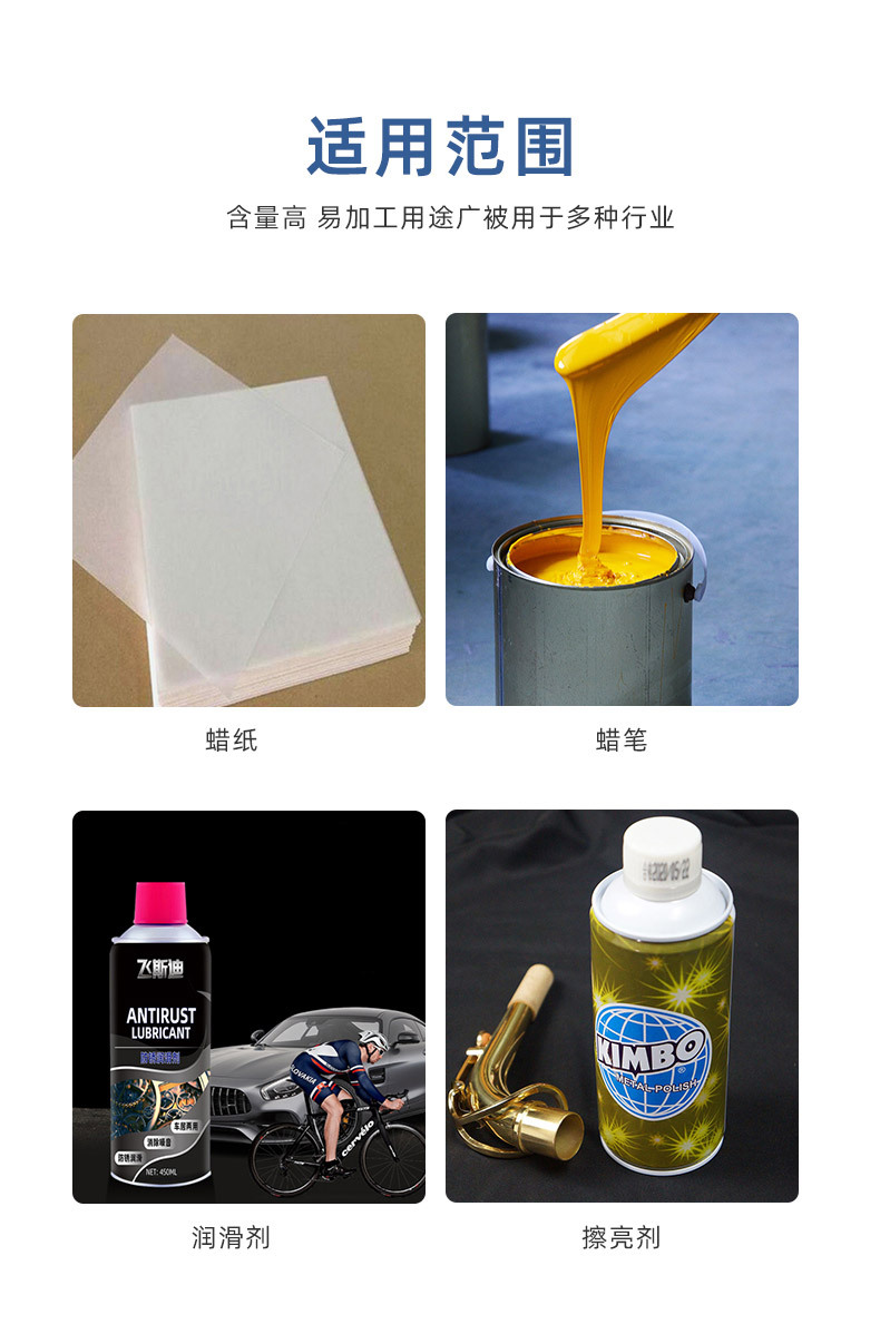 1.適用于長時間燃燒的、良好的不透明性、硬度要求高的蠟燭。