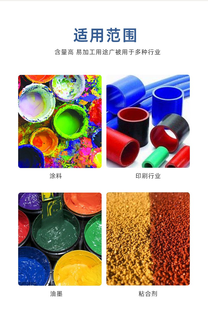 廣泛應(yīng)用于通用塑料、工程塑料、合成橡膠、纖維、熱熔膠、樹脂、油品、墨水、涂料等行業(yè)中。