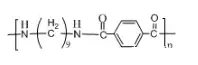 ????????英文名:Polyamide10T or Nylon10T;簡(jiǎn)稱(chēng)PA10T。尼龍10T,又聚酰胺10T,即聚對(duì)苯二甲酰癸二胺。其分子結(jié)構(gòu)式為: