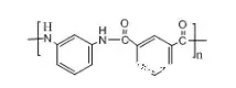 ????????英文名:Polyamide1313;Nomex;Nylon1313;簡(jiǎn)稱(chēng)PA1313。間苯二甲酰氯和間苯二胺為單體進(jìn)行縮聚而得,其分子結(jié)構(gòu)式為: